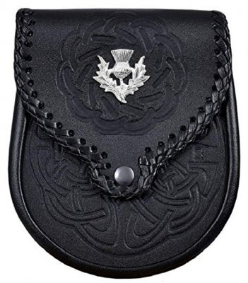 Double-Embossed-Scottish-Black-Leather-Kilt-Sporran-w-Belt