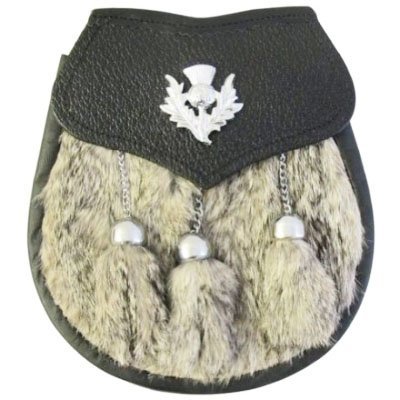 Dress-Sporran-With-White-Rabbit-Fur-and-3-white-tassels