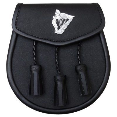 Leather-Sporran-Harp-Badge-on-Front-3-Tassels-Chain-Straps-included