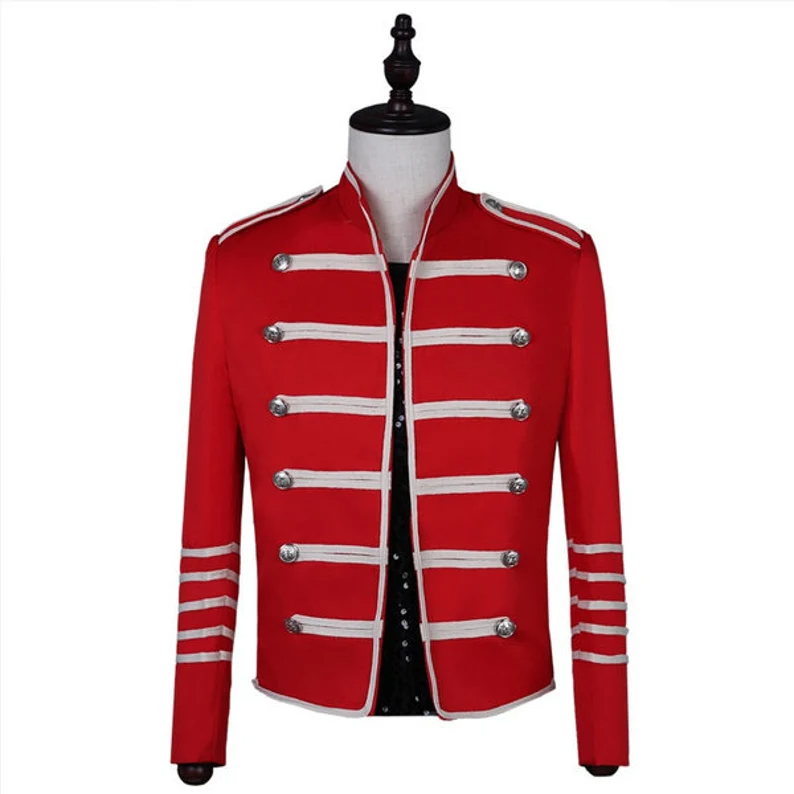 Men’s British Military Hussar Jacket Artillery Tunic Uniform Drummer Coat Rock Band Outfit Blazer Top Suit Mess Dress Steampunk Jacket