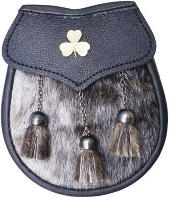 Seal-Skin-Kilt-Sporran-Chrome-Irish-Shamrock-badge