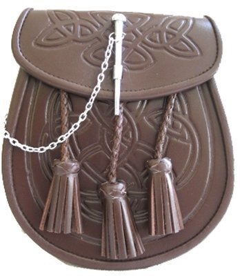 Sporrans-Brown-Leather-embossed-Celtic-Knot-design-Pin-Closure-Includes-Chain-Belt